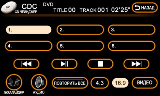 Интерфейс подключения и управления с сенсорного экрана монитора 6-ти дискового DVD чейнджера виртуальным