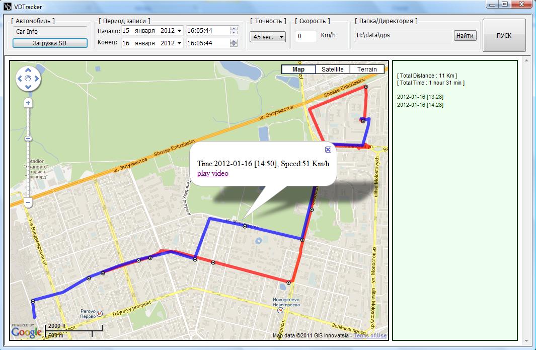 Но GPS-датчик не только дает необходимую информацию. Он еще и бережет Вас от штрафов! В модуль заложены координаты размещения всех камер "СТРЕЛКА СТ", которые фиксируют скорость машин. О всех таких опасных для водителя местах Вы узнаете заранее с помощью голосового оповещения. Кстати, для самоконтроля можете задать максимальную скорость, и в случае превышения этого порога Вы опять-таки получите предупреждение от заботливого видеорегистратора.