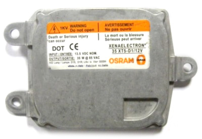 Блок розжига OSRAM Xenaelectron 35XT5-3-D1/12V – превосходное устройство, созданное по последним технологиям. Используется для установки на американские автомобили Lincoln Navigator, Town Car, Cadillac Escalade, STS, CTS, а также некоторые модели BMW E90, Skoda Octvia A5 и др. Посредством такого прибора Вы сможете обеспечить холодный поджег ксеноновой лампы до максимальной яркости за 1 секунду. Подходит для установки на лампы D1.