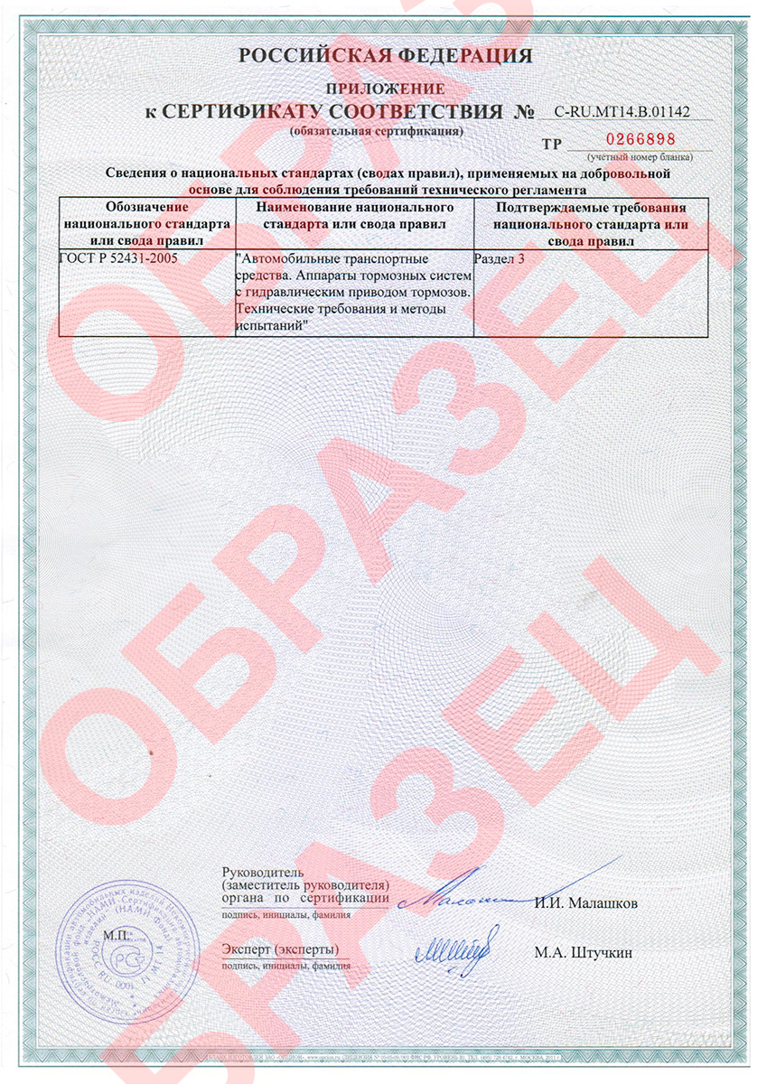 Перечень совместимых тормозных колодок:
