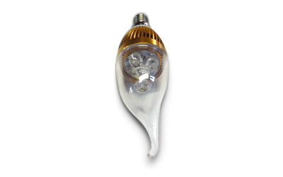LED лампа 220 В в корпусе "Свеча" имеет встроенный стабилизатор напряжения 90-265 В. Загорается она сразу после включения, не мерцает, светит равномерно.