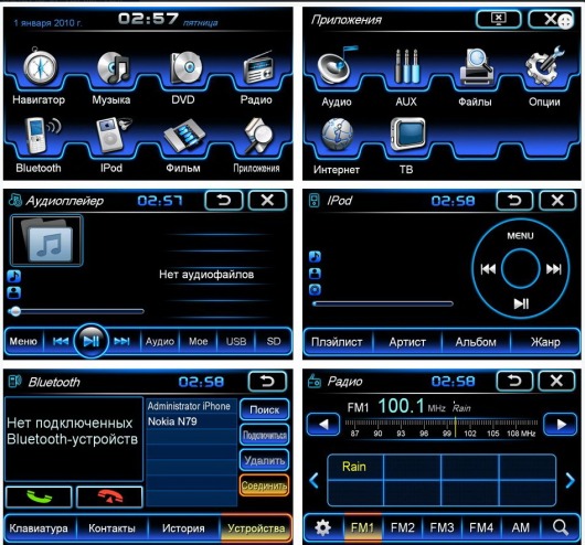 Кроме прочего, с помощью этого головного устройства вы сможете выходить в интернет и пользоваться функцией отображения пробок на дороге. Благодаря этой функции навигатор в вашей магнитоле будет прокладывать дорогу с учетом пробок, т.е. выбирать для вас самый быстрый и оптимальный путь. Чтобы появились доступ в Интернет и функция отображения кнопок, нужен модем Intro GPS 3G. Модем не входит в стандартную комплектацию и приобретается отдельно.