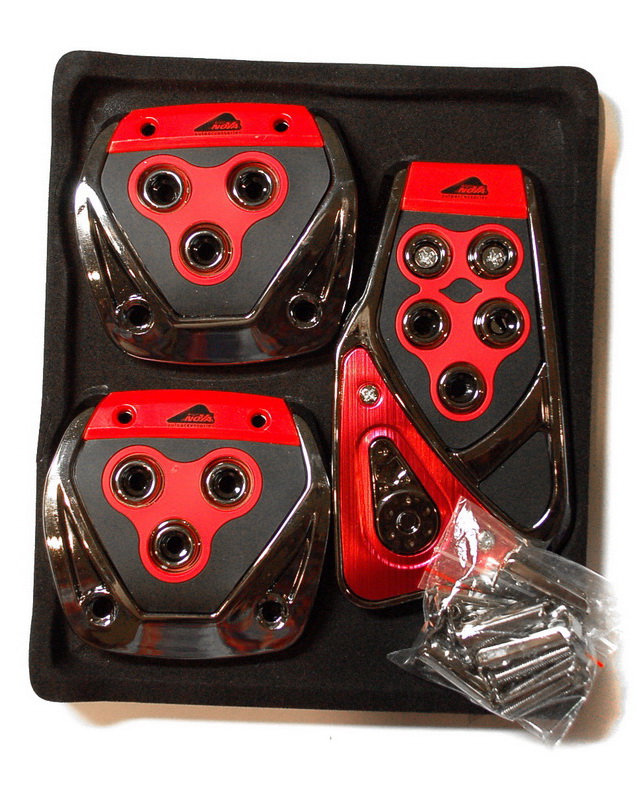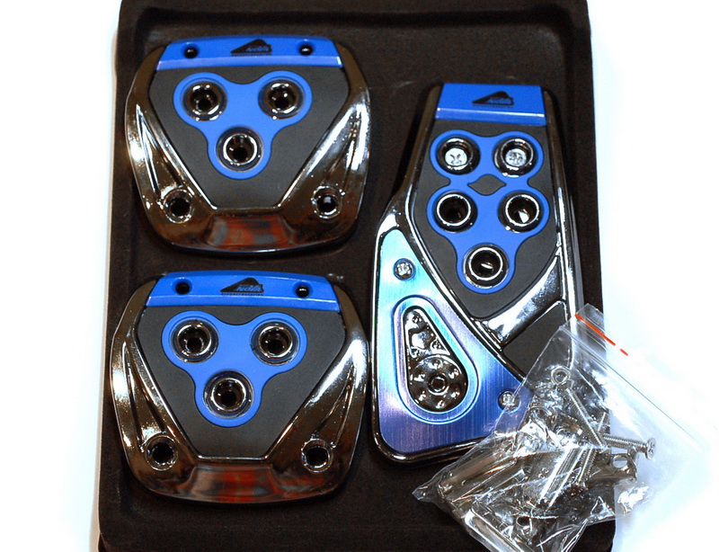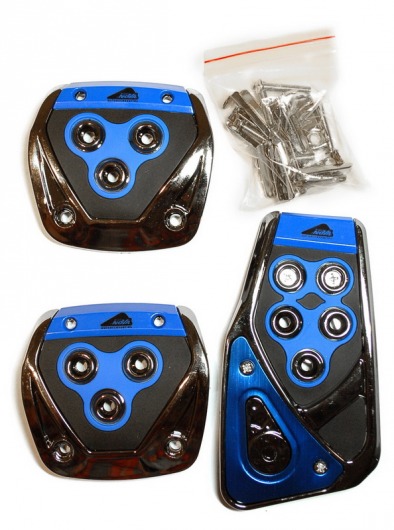 Данный комплект противоскользящих накладок на педали автомобиля имеет необычный дизайн, благодаря чему они не только повышают комфорт вождения, но ещё и украшают интерьер вашего автомобиля. Вы можете выбрать один из 3-х возможных цветов накладок: синий, серый или красный.