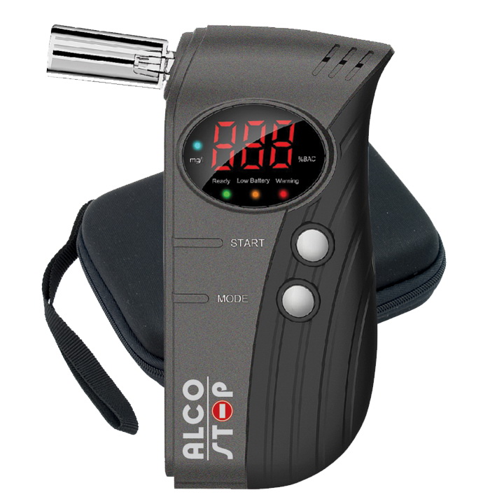 Современный дизайн, портативная конструкция и удобный чехол для переноски делают алкотестер ALCOSTOP AT-115 очень удобным для личного использования. Корпус прибора из прочного темного пластика хорошо лежит в руке и не скользит. На передней панели находятся кнопки управления и дисплей, на котором вы будете видеть результаты измерений. Показания алкотестера могут выводиться либо в промилле, либо в мг/л. А если эти показания превышают заданный уровень, устройство издает звуковой и визуальный предупреждающий сигнал.