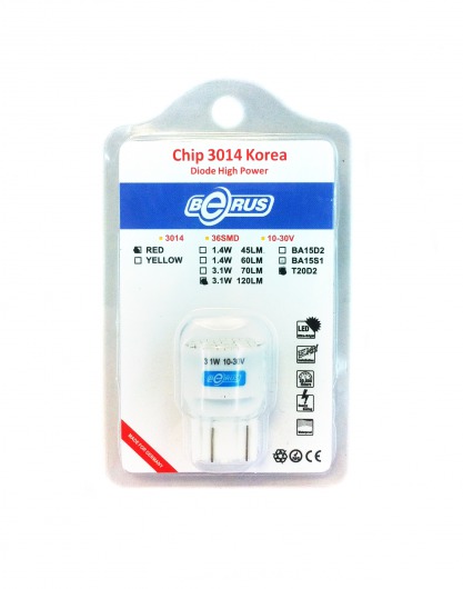 Светодиодная лампа T20 3.1W предназначена для установки в противотуманные фары и указатели поворотов. Она намного ярче обычных галогеновых ламп, отлично освещает дорогу даже в самую непроглядную темноту и сильный ливень. Цвет свечения со временем не изменяется. Служит такая лампа очень долго, при этом потребляет незначительное количество энергии.