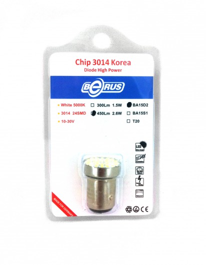 Светодиодная лампа BA15D2 2.6W предназначена для установки в задние габариты. Она намного ярче обычных галогеновых ламп, отлично освещает дорогу даже ночью и в дождливую, туманную погоду. Цвет свечения со временем не изменяется. Служит такая лампа очень долго, при этом потребляет незначительное количество энергии.
