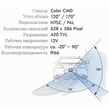 Камера заднего вида позволит вам спокойно парковаться или двигаться задним ходом, не опасаясь задеть другие автомобили или врезаться в бордюр. Широкий угол обзора (170°) делает видимыми те области, которые невозможно рассмотреть в зеркало заднего вида. Кроме того, у данной модели есть парковочная разметка. Это значит, что на изображение накладываются специальные линии, которые помогают вам не только ориентироваться в пространстве, но и адекватно оценивать расстояние до препятствий.