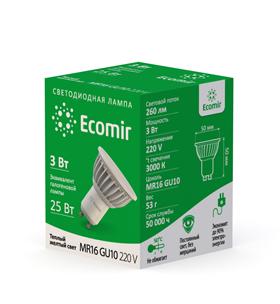 Светодиодная лампочка для дома Ecomir GU10 3W обладает следующими преимуществами: