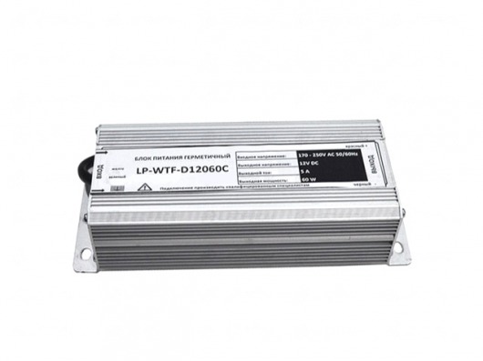 Герметичный блок питания WTF-D24-060C с мощностью 60 Вт поможет вам подключить светодиодную ленту с напряжением 24V к обычной электросети (220V). У данного блока питания для ленты есть металлический корпус, который защищает блок от внешних повреждений и влаги. Поэтому вы спокойно можете использовать данный блок бесперебойного питания на улице или в помещении с повышенной влажностью (например, в ванной комнате).