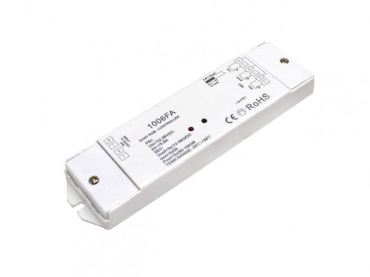 RGB-контроллер SR-1006 FA позволит вам управлять свечением светодиодной ленты. Вы можете подключить к контроллеру до 10 метров ленты с напряжением 12, 24, 36V (допустимая мощность (180/360/540W).