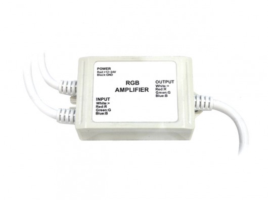 RGB усилитель 03WTF в пластиковом корпусе позволит "разгрузить" RGB контроллер. Т.е. если мощность необходимого метража ленты превышает допустимую мощность контроллера, то к нему можно подключить усилитель. Таким образом, вы можете подсоединить до 15 метров дополнительной светодиодной ленты. Данный усилитель вы можете использовать при относительной влажности до 95%.