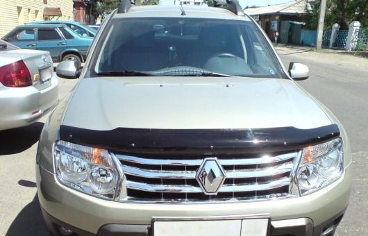 Дефлектор капота для Renault Duster — это щиток из орг.стекла темного цвета, который крепится на переднюю часть капота. Благодаря тому, что дефлектор разработан специально для Renault Duster от 2011 г.в., устанавливается он легко и быстро, при этом сверлить кузов вам не нужно. По форме же накладка полностью повторяет контуры капота. Данная модель прочна и долговечна: она надежно крепится, не боится коррозии, экстремальных температур и серьезных перегрузок.