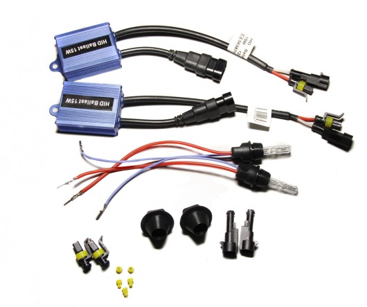 Комплект состоит из: 2 блоков, 2 ламп, проводки и переходников под цоколь ламп BA15S , T10, 7440, 3156