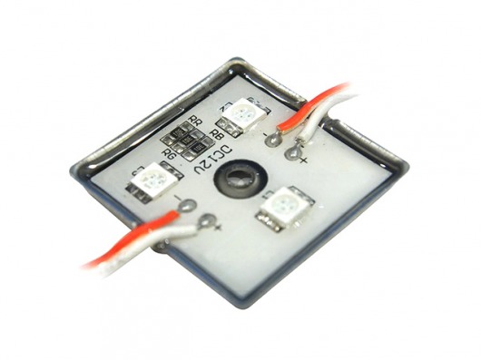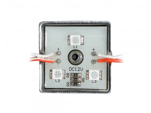 Квадратный светодиодный модуль MS 5050-3 IP65 3240Lm — это 3 диода SMD 5050 и резисторы с рабочим напряжением 12V, которые находятся в металлическом корпусе. Яркость 1 диода составляет 54Lm, а всей упаковки — 3240Lm, что дает вам очень яркое и насыщенное свечение. Корпус залит двухкомпонентным компаундом. Поэтому вы можете использовать светодиодный модуль led в условиях повышенной влажности и резкого перепада внешней температуры от -30 до +50 градусов.