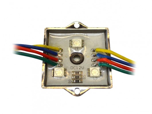Квадратный светодиодный модуль MS 5050-3 IP65 RGB — это 3 диода SMD 5050 цвета RGB и резисторы с рабочим напряжением 12V, которые находятся в металлическом корпусе. Вы можете управлять модулем и создавать разные световые эффекты с помощью контроллера RGB. Корпус залит двухкомпонентным компаундом. Поэтому вы можете использовать светодиодный модуль led в условиях повышенной влажности и резкого перепада внешней температуры от -30 до +50 градусов.
