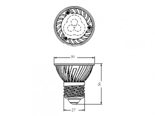 Светодиодная лампа S-E27-1х3-H с углом свечения 38 градусов и 3 светодиодами — это отличная альтернатива галогеновой лампе с цоколем Е27. Радиатор данной лампы — ребристый, что способствует необходимому охлаждению. Потребляемая мощность — всего лишь 3Вт. Рабочее напряжение — AC85~265V. Вы можете выбрать цвет свечения лампы: холодный белый с яркостью 270 Lm или теплый белый - 150 Lm. Специальный дизайн позволит вам решить любой вопрос по качественному освещению интерьера!