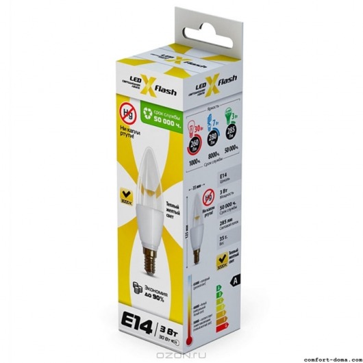 На энергосберегающую светодиодную лампу Е14 X-Flash - гарантия 5 лет!
