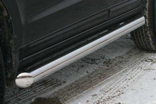 Пороги на Hyundai Santa Fe – это боковые подножки из нержавеющей стали диаметром 60 мм, которые позволяют более комфортно входить и выходить из салона автомобиля. Подножки Hyundai Santa Fe очень прочные, надежные и долговечные: они не боятся коррозии, сколов и царапин и выдерживают большие нагрузки.
