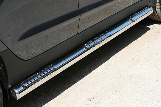 Пороги на Hyundai ix35 – это боковые подножки из нержавеющей стали диаметром 76 мм, которые позволяют более комфортно входить и выходить из салона автомобиля. Подножки Hyundai ix35 очень прочные, надежные и долговечные: они не боятся коррозии, сколов и царапин и выдерживают большие нагрузки.