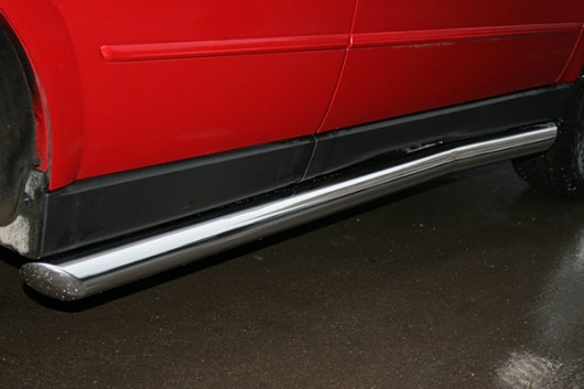Пороги на SsangYong Actyon – это боковые подножки из нержавеющей стали диаметром 76 мм, которые позволяют более комфортно входить и выходить из салона автомобиля. Подножки SsangYong Actyon очень прочные, надежные и долговечные: они не боятся коррозии, сколов и царапин и выдерживают большие нагрузки.