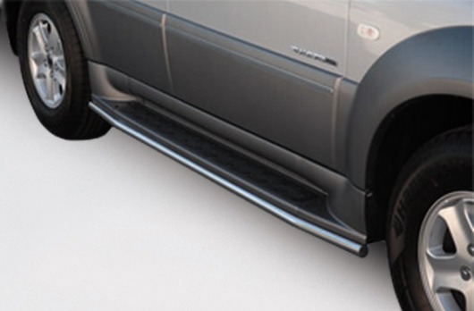 Защита для порогов SsangYong Rexton – это накладки на пороги из нержавеющей стали в форме трубы диаметром 60 мм. Главное их назначение – защита подножек авто от износа.