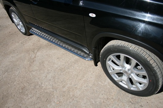 Боковые пороги-подножки сделаны специально для автомобилей Nissan X-Trail 2007-2012/2010 г.в., поэтому устанавливаются достаточно просто и без повреждений корпуса. Помимо этого, стальные пороги с листом для Ниссан Х-Трейл смотрятся очень стильно и эффектно. Они добавят вашему авто еще больше солидности и внушительности.