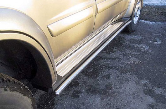 Защита для порогов Nissan Patrol – это накладки на пороги из нержавеющей стали в форме трубы диаметром 60 мм. Главное их назначение – защита подножек авто от износа.