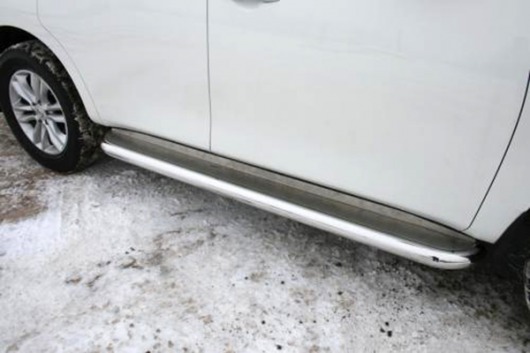 Боковые пороги-подножки сделаны специально для автомобилей Nissan Patrol от 2010 г.в., поэтому устанавливаются достаточно просто и без повреждений корпуса. Помимо этого, стальные пороги с листом для Ниссан Патрол смотрятся очень стильно и эффектно. Они добавят вашему авто еще больше солидности и внушительности.