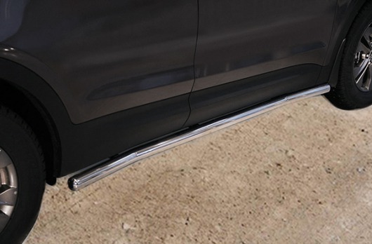 Пороги на Hyundai Santa Fe – это боковые подножки из нержавеющей стали диаметром 60 мм, которые позволяют более комфортно входить и выходить из салона автомобиля. Подножки Hyundai Santa Fe очень прочные, надежные и долговечные: они не боятся коррозии, сколов и царапин и выдерживают большие нагрузки.