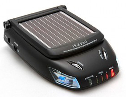 Кроме цифрового носителя JARON JR8 PRO имеет вибродатчик, благодаря которому существенно экономится энергия аккумулятора. Вибро срабатывает в том случае, если автомобиль не движется, либо его скорость очень маленькая (движение по парковке, например), после чего аппарат отключается. Что касается питания, то здесь возможно два варианта - при помощи подключения к бортовой сети автомобиля или при помощи солнечной батареи, расположенной на верхней крышке корпуса и имеет поворотный механизм.