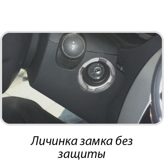защита корпуса замка зажигания: металлический кожух монтируется поверх штатного замка зажигания. Благодаря этому замок защищается от ударных нагрузок и механического воздействия.