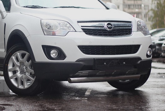 Труба на бампер Opel Antara защищает передний бампер автомобиля от различных механических повреждений при мелких ДТП и неудачных парковках, а также незаменима при езде по бездорожью. А кроме этого, труба на передний бампер Опель Антара смотрится очень стильно и эффектно.