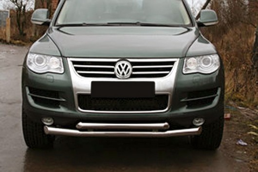 Защита переднего бампера для Volkswagen Touareg – это двойная труба на бампер из нержавеющей стали диаметром 76/60 мм.