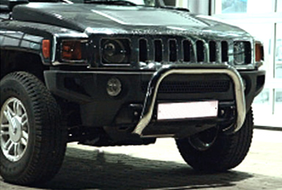 Передняя решетка Hummer H3 (кенгурятник) – это защитная дуга на бампер из нержавеющей стали диаметром 76 мм.