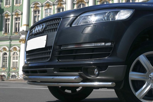 Защита переднего бампера для Audi Q7 – это двойная труба на бампер из нержавеющей стали диаметром 42/60 мм.