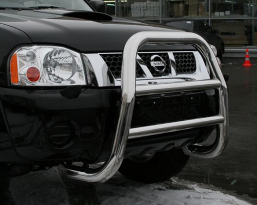 Передняя решетка Nissan NP300 (кенгурятник) – это защитная дуга на бампер из нержавеющей стали диаметром 76 мм.