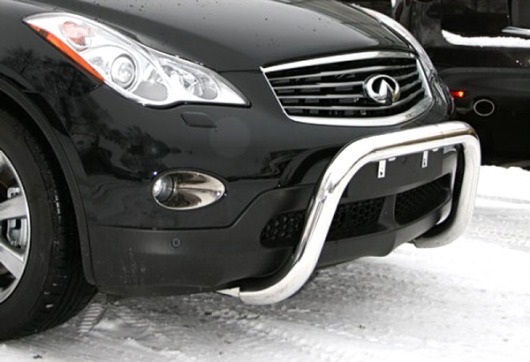 Передняя решетка Infiniti EX35 (кенгурятник) – это защитная дуга на бампер из нержавеющей стали диаметром 76 мм.