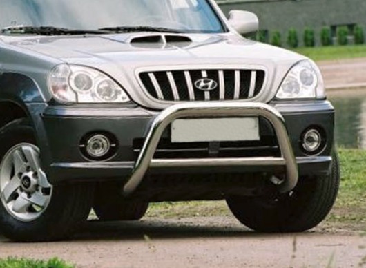 Передняя решетка Hyundai Terracan (кенгурятник) – это защитная дуга на бампер из нержавеющей стали диаметром 76 мм.