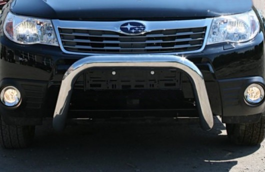 Передняя решетка Subaru Forester (кенгурятник) – это защитная дуга на бампер из нержавеющей стали диаметром 76 мм.