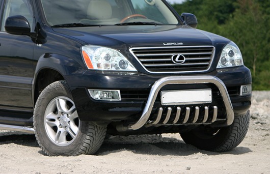 Передняя решетка Lexus GX470 (кенгурятник) – это защитная дуга на бампер из нержавеющей стали диаметром 76 мм.