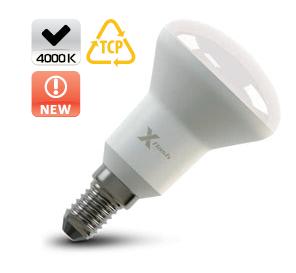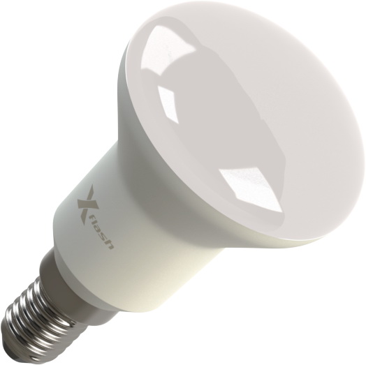 Светодиодная лампа X-Flash FUNGUS E14 5W выполнена в форме лампы-рефлектора с матовой колбой, корпус изготовлен из теплорассеивающей пластмассы, что значительно повышает ее безопасность. По форме, цоколю и размерам led лампа соответствует аналогичным люминесцентным лампам и лампам накаливания. Она имеет большой радиатор, который препятствует снижению светоотдачи и эффективно уменьшает температуру внутри лампы. Данная модель рассчитана на напряжение 220 В. Мощность диодной лампы X-Flash — 5 Вт., яркость — 420 Лм, а температура свечения  4000 K (это нейтральный белый свет).