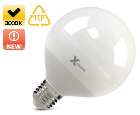 Светодиодная лампа X-Flash Globe E27 13W — лампа общего освещения. Колба лампы шарообразной формы типа "Globe", матовая. Лампа имеет уникальный радиатор из теплорассеивающей пластмассы, который способствует эффективному распределению тепла и снижению температуры внутри лампы, тем самым увеличивается срок службы лампы. Данная модель рассчитана на напряжение 220 В. Мощность диодной лампы X-Flash — 13 Вт., яркость — 1000 Лм, а температура свечения  3000 K (это желтый свет).