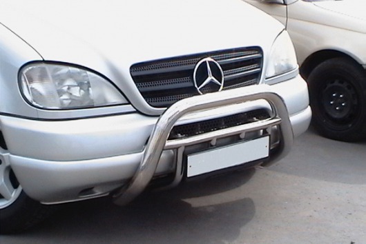 Передняя решетка Mercedes M-Class (кенгурятник) – это защитная дуга на бампер из нержавеющей стали диаметром 76 мм.