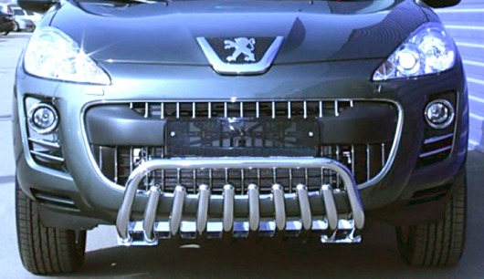 Передняя решетка Peugeot 4007 (кенгурятник) – это защитная дуга на бампер из нержавеющей стали диаметром 42 мм.