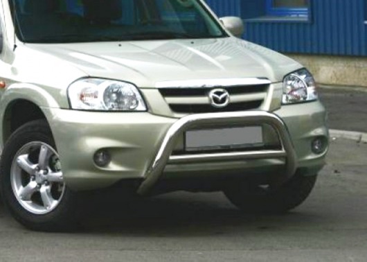 Передняя решетка Mazda Tribute (кенгурятник) – это защитная дуга на бампер из нержавеющей стали диаметром 76 мм.