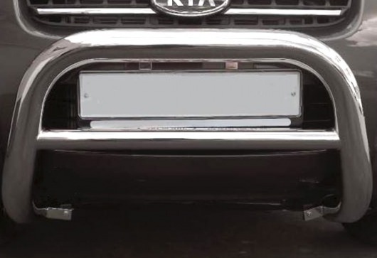 Передняя решетка Kia Sportage (кенгурятник) – это защитная дуга на бампер из нержавеющей стали диаметром 76 мм.