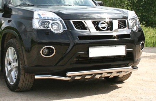 Вопросы и отзывы про Защита переднего бампера Nissan X-Trail от 11 г.в., локальная сборка С-Пб. (двойная, с элементами из профильной трубы, 60/60 мм)