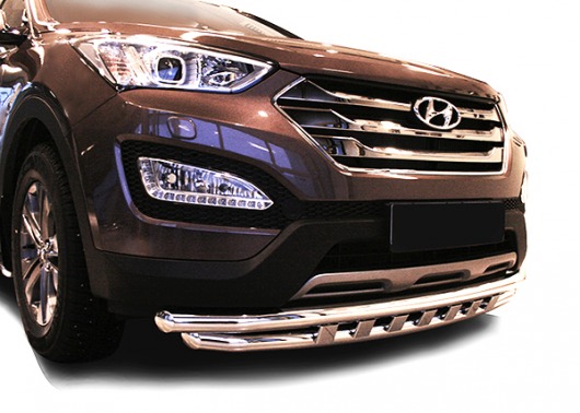 Вопросы и отзывы про Защита переднего бампера Hyundai Santa Fe от 13 г.в. (двойная, с декоративными элементами, 60/60 мм)