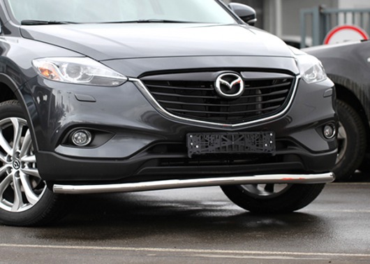 Труба на бампер Mazda CX-9 защищает передний бампер автомобиля от различных механических повреждений при мелких ДТП и неудачных парковках, а также незаменима при езде по бездорожью. А кроме этого, труба на передний бампер Мазда CX-9 смотрится очень стильно и эффектно.