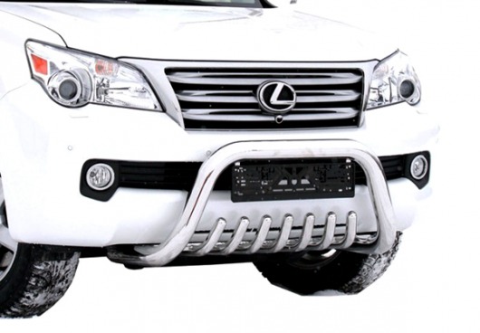 Передняя решетка Lexus GX460 (кенгурятник) – это защитная дуга на бампер из нержавеющей стали диаметром 76 мм.